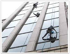 このように、一般の方がガラスの外側を清掃することがますます困難になってきています。 窓ガラス、手摺りガラスの外側が汚れたままになっていませんか? 「せっかくの窓からの景色が台無しだ・・・窓ガラスが汚れていては」そんなお客様の声にお応えいたします。